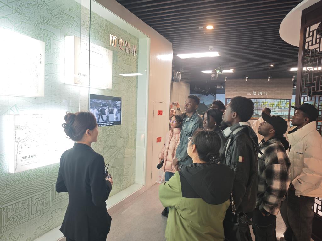 步入以“城市时光走廊”为主题的展区,一幅描绘天津因河而生、依港而兴的历史画卷徐徐展开。留学生们被精美的历史地图、老照片和实物模型所吸引,从六百多年的建卫史,到近代中国“百年风云看天津”的租界建筑风貌,再到新中国成立后的工业辉煌,大家认真聆听,不时驻足提问。来自尼日利亚的欧弟表示:“我之前在五大道散步时就很喜欢那些老建筑,今天在这里系统地了解了它们背后的历史故事,感觉非常震撼,天津的历史和文化比我想象的还要丰富。”