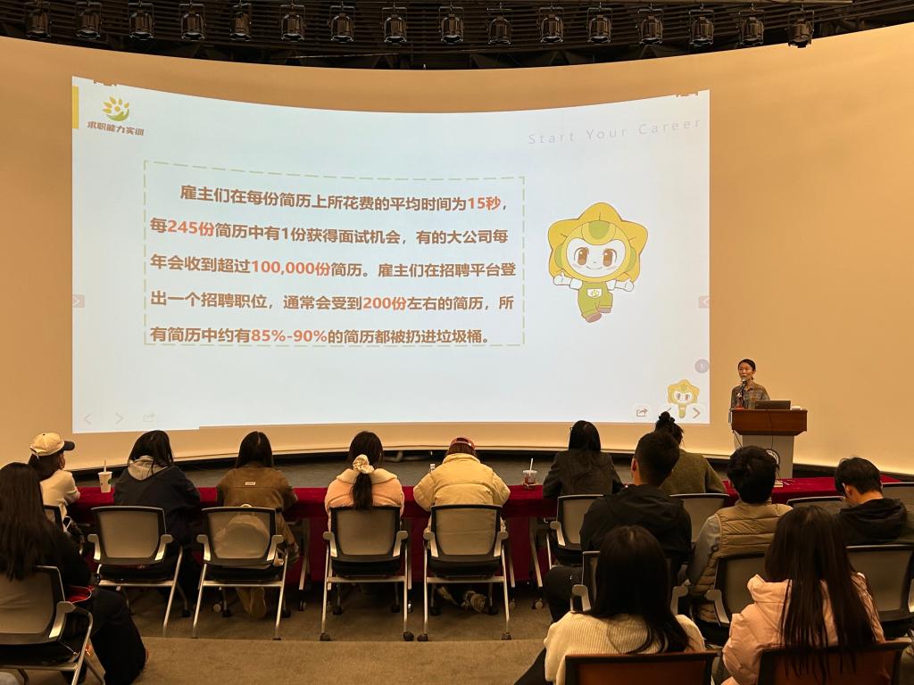 在当前就业竞争日趋激烈的背景下,为深入贯彻“稳就业、保就业”的决策部署,切实提升我院学生的求职技能与核心竞争力,近日,一场以“职”点迷津,让你的简历“开口说话”为主题的职业生涯规划专题讲座在国际教育学院报告厅隆重举行。本次活动特邀天津市建筑业协会就业技能指导老师马瑾若亲临主讲,为在场的学生带来了一场内容详实、极具实践指导意义的“求职第一课”。