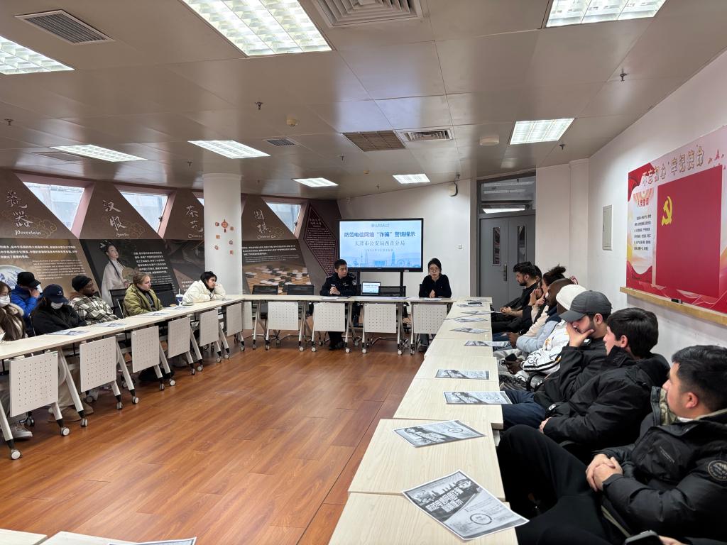 为切实筑牢校园安全防线,保障在校留学生节日期间的人身财产安全与合法权益,近日,国际教育学院特邀天津市公安局西青分局警官走进校园,面向全体在校留学生开展节前安全教育专题讲座。学院相关负责人、辅导员及来自塔吉克斯坦、塞拉利昂、乌干达等多个国家的留学生代表参加活动。